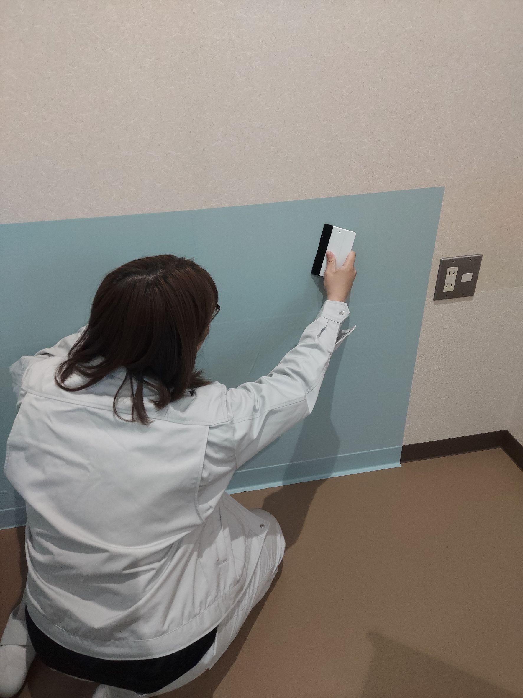 クロス張りと言っても、既存の壁紙の上からはるだけだったのですが、既存の壁紙の凹凸が大きく空気が入ってしまったり、スキージーで強くこすりすぎて、クロスが破けてしまったりと、とても大変でした...。
