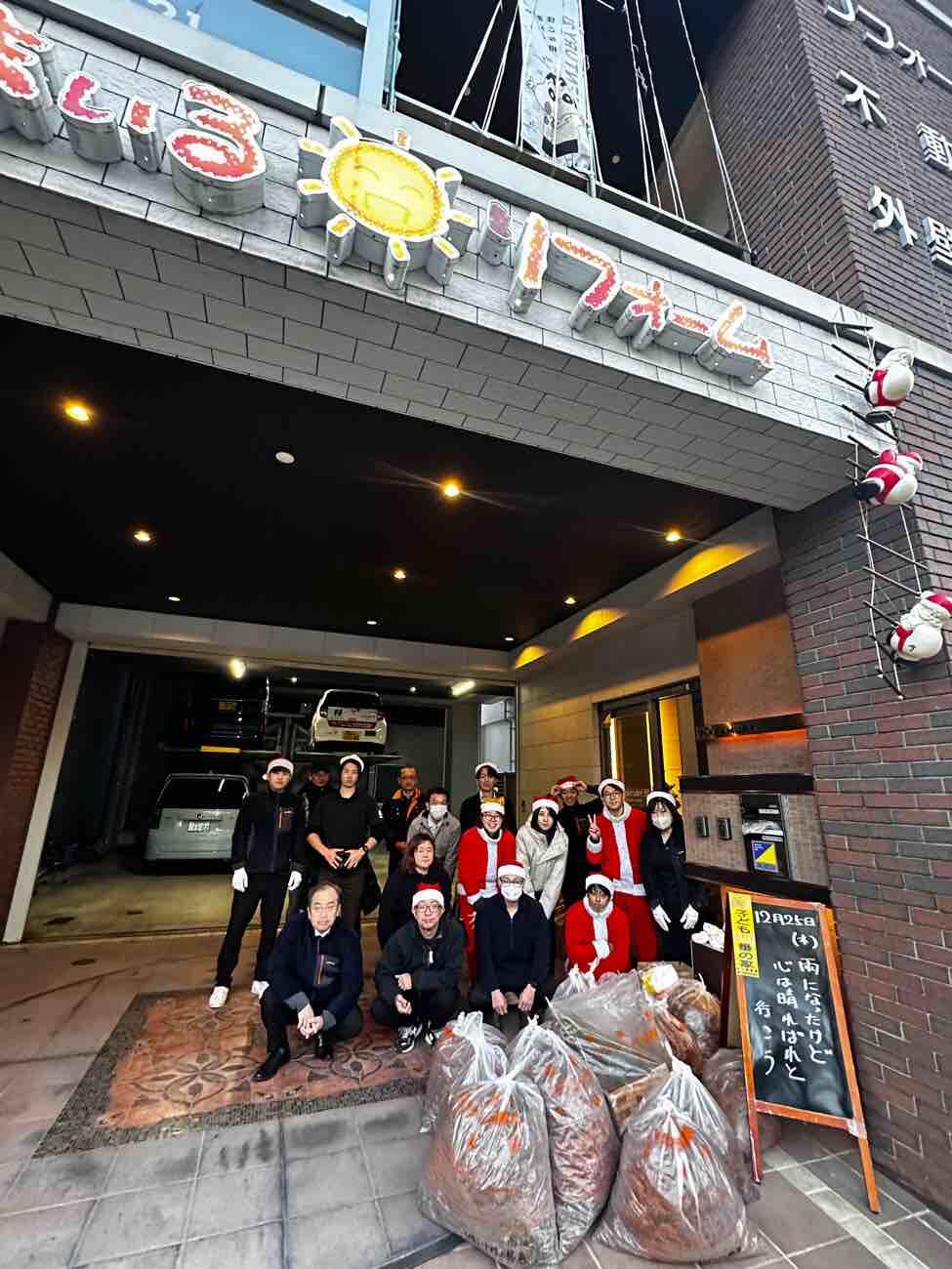本来はクリスマスイブの朝に実施予定でしたが、あいにくの雨で延期が続き、今年は今日の夕方に行うことになりました。急な日程変更となってしまったため、参加人数は少なめでしたが、パートナー店の皆さまも駆けつけてくださり、松山町の街をしっかりピカピカにできたと思います