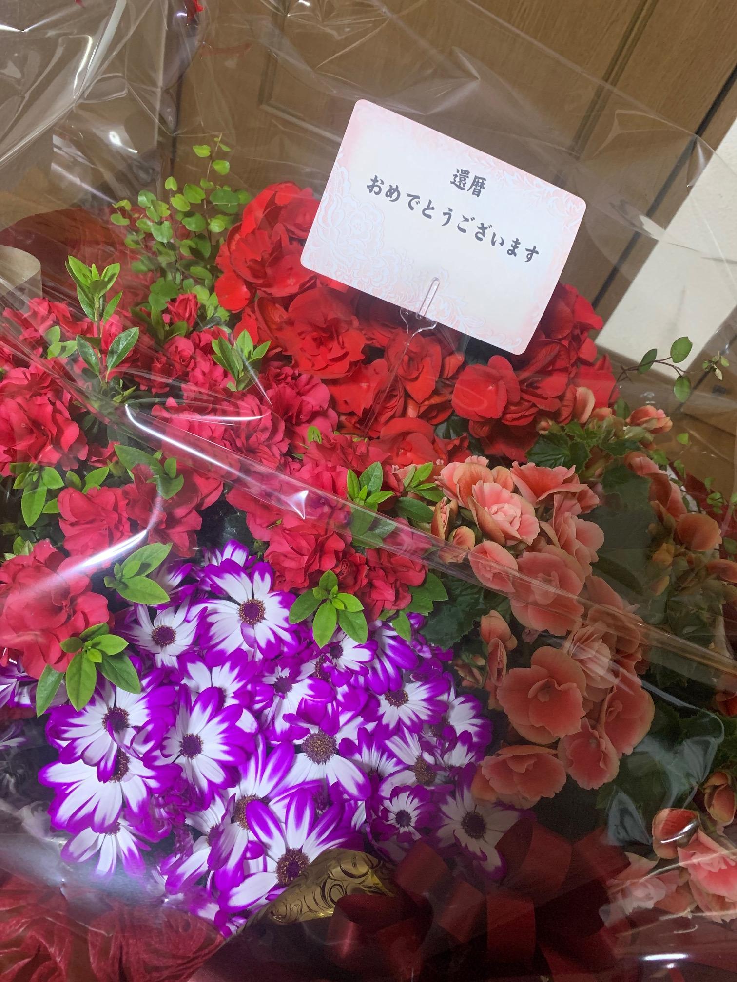 会社の方に大きな大きな花束をもらって帰ってきてました