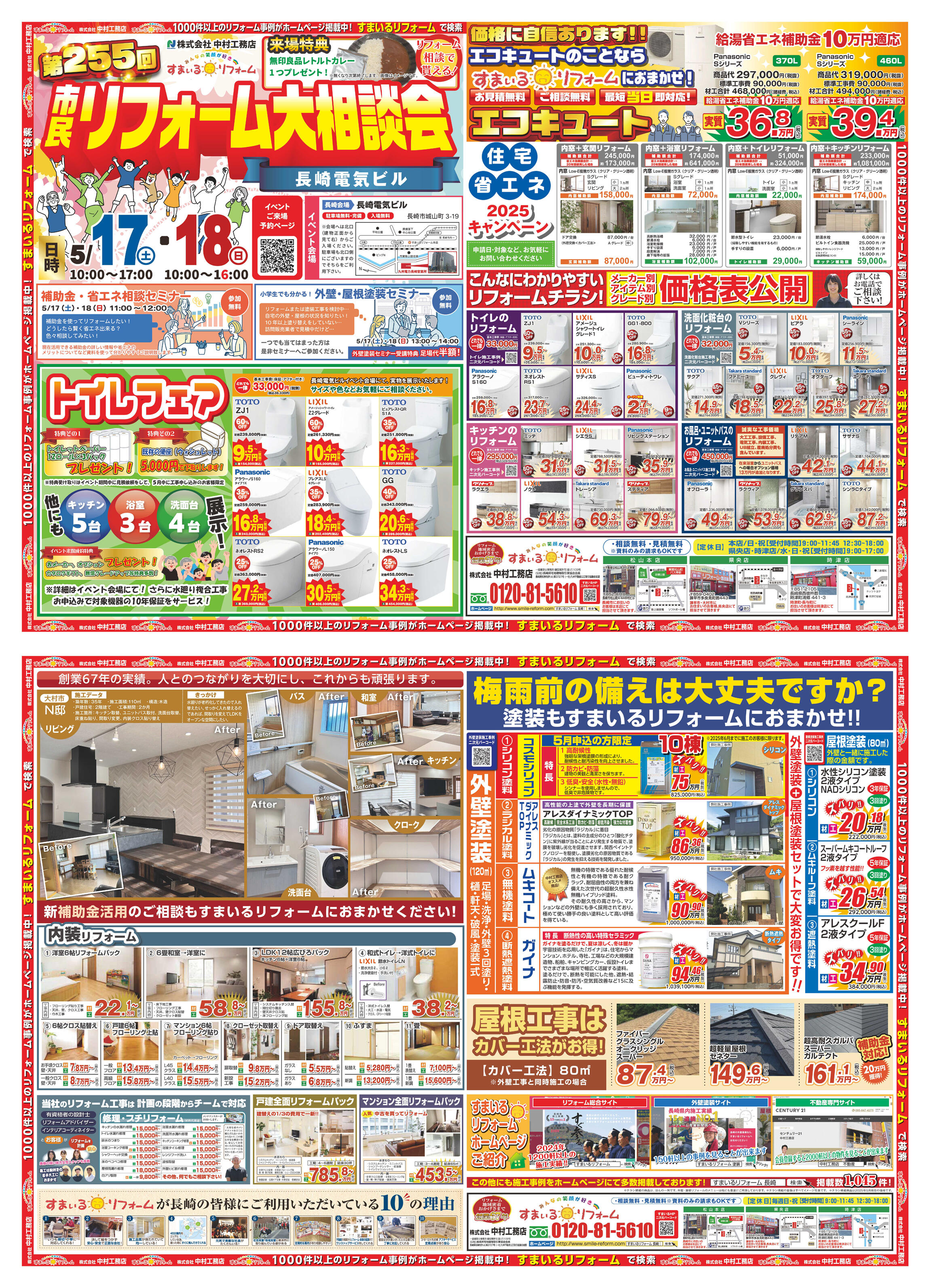 【会場①】長崎電気ビル/長崎市城山町 3-19 、【会場②】すまいるリフォーム 中村工務店 県央店/諫早市多良見町囲 443
