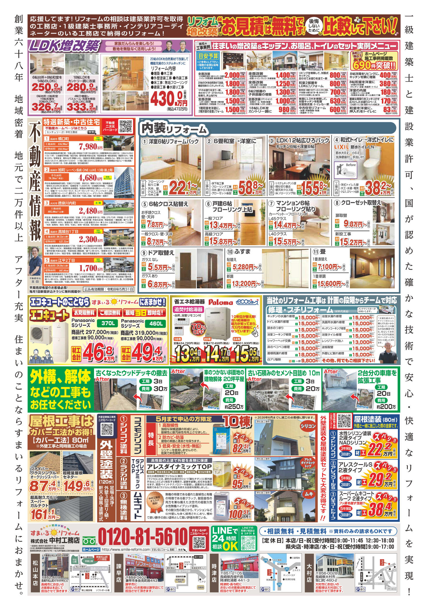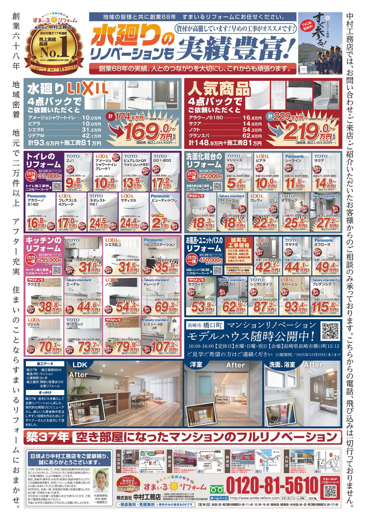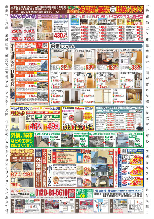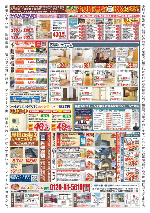 すまいるリフォームでは、地域のお宅にお届けしているチラシに、分かりやすいリフォームの価格を掲載しています。 定額商品ですので、費用がいくらかかるのかが分かりやすく、お客様からも大変ご好評いただいております! もちろん、「こんな商品あるの?」などのご要望にもお応えいたしますので、お気軽にご相談ください。