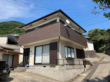 ベランダ色をアクセントに外壁色をベージュで2トーンに仕上げました