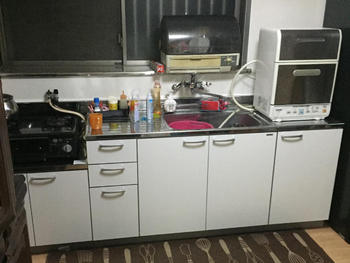 キッチンの方は、床と一緒に壁天井もやり替えました。出来上がり後は、とても綺麗に仕上がっていました。