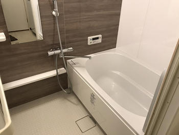 水廻り、内装ともにご満足頂ける綺麗な仕上がりとなりました。洗面台も向きを替え、扉と干渉しないよう奥行きの狭いものをご提案しています。